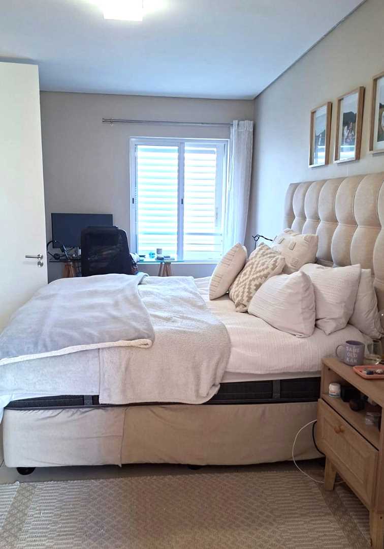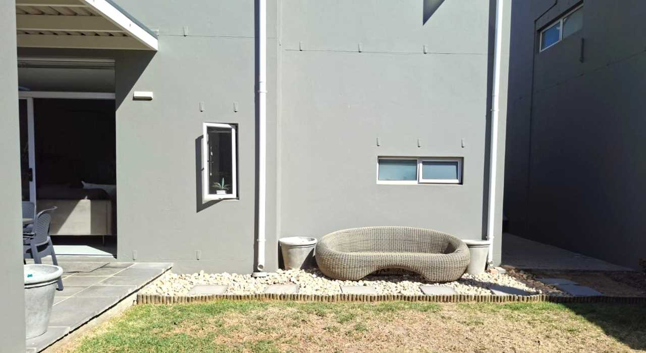 As you step into the house, you will find a large open plan kitchen and lounge/dining room, opening up to a covered patio with build-in braai, and a beautiful enclosed garden, bordering a green zone.